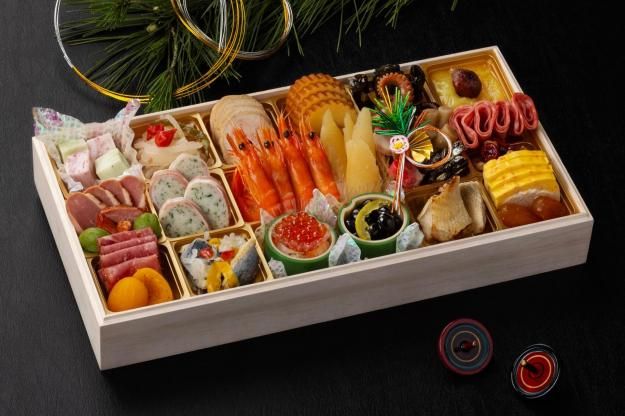 イチゴのマーブルチーズ/キウイのマーブルチーズ/ベーコンとパプリカの大根マリネ/ミニ赤ピーマンピクルス/ミニ黄ピーマンピクルス/かに信田巻/伊達巻/たこ照り焼き/にしん昆布巻/芋きんとん/渋皮栗甘露煮/合鴨オレンジソース煮/若桃のシロップ漬け/豚タンのピリ辛スモーク/イタヤ貝ムースのベーコン巻/海老艶煮/数の子醤油漬け/牛蒡煮/片口鰯の田作り/梅麩甘煮/ボロニアソーセージ/クランベリーとクルミのシロップ煮/パストラミビーフ/杏子白ワイン煮/にしんとパプリカのマリネ/柚子風味かぶら漬け/いくら醤油漬け/柚子皮甘煮/黒豆煮/赤魚西京焼/鶏松風のチーズ寄せ/ドライトマトのワイン煮